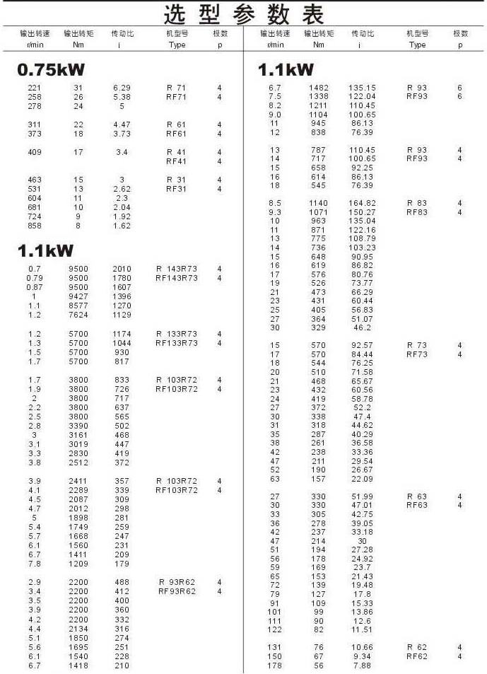 選型參數表0.75kW(續),1.1kW